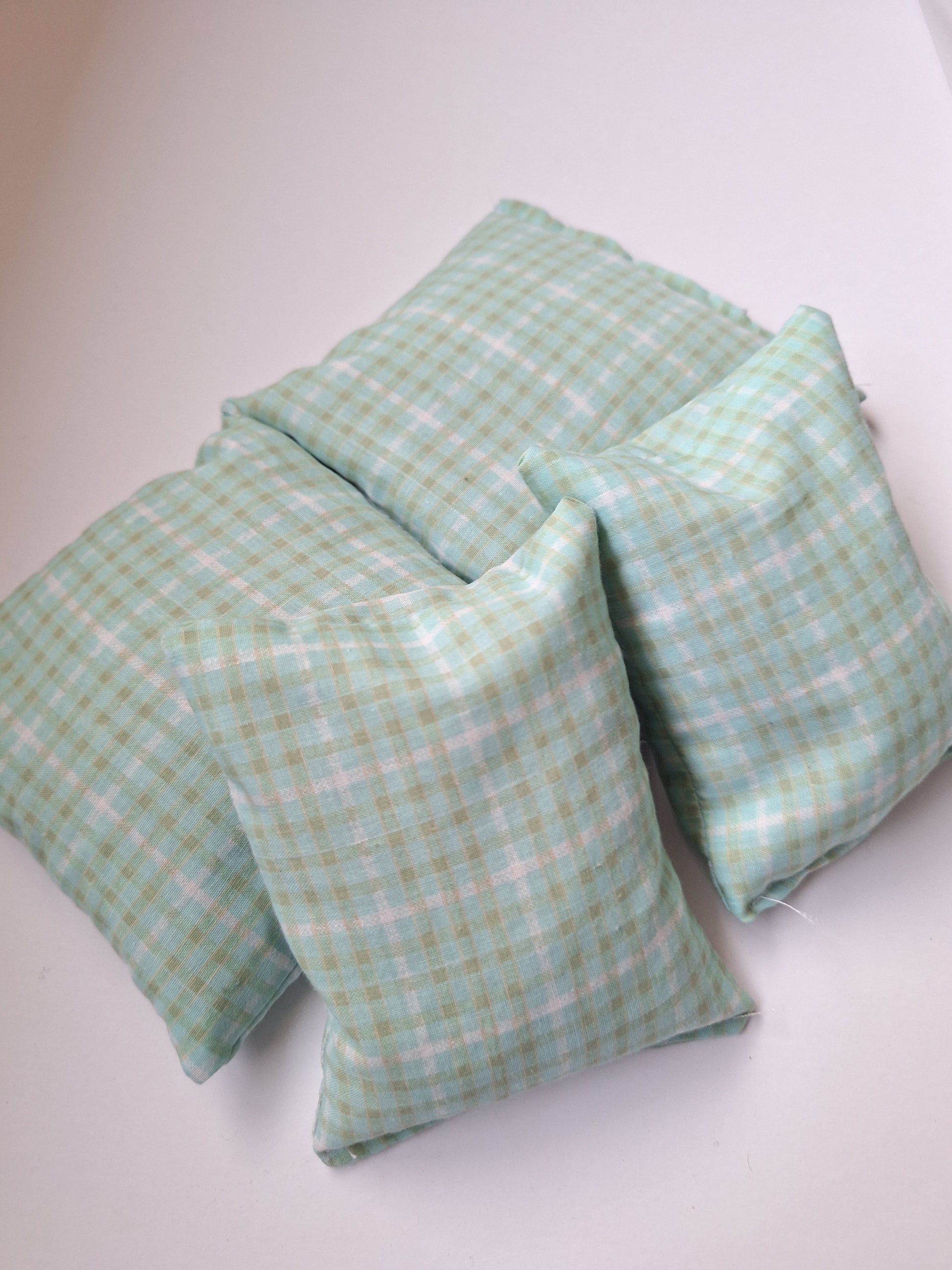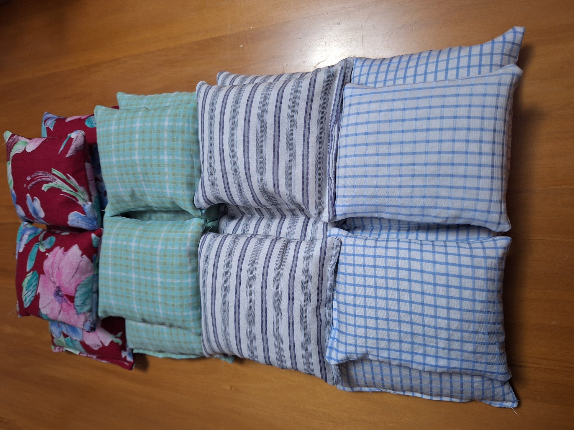 Wheatpack & Hand Warmers Set – Handmade from reclaimed fabrics for sustainable warmth. One full-size wheatpack + two pocket-sized hand warmers. Heat, snuggle, repeat.